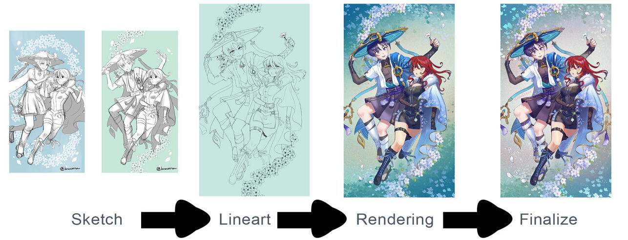 2nd or More characters in the scene/complex pattern/complex background/complex propsDeliverables